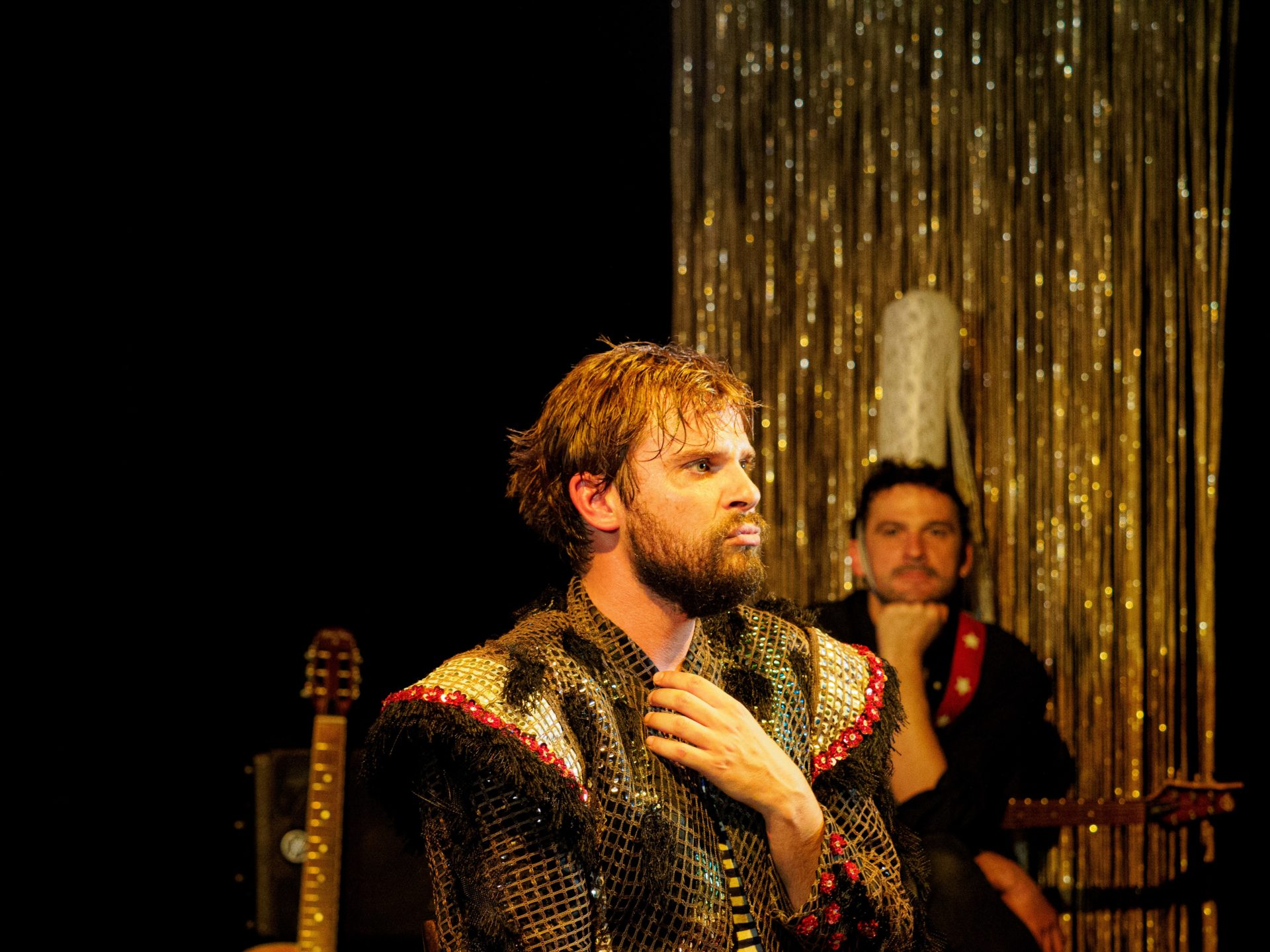 Hélène François met en scène Benjamin Tholozan dans Parler Pointu, une auto-fiction écrite à deux, accompagné au plateau par le musicien Brice Ormain.