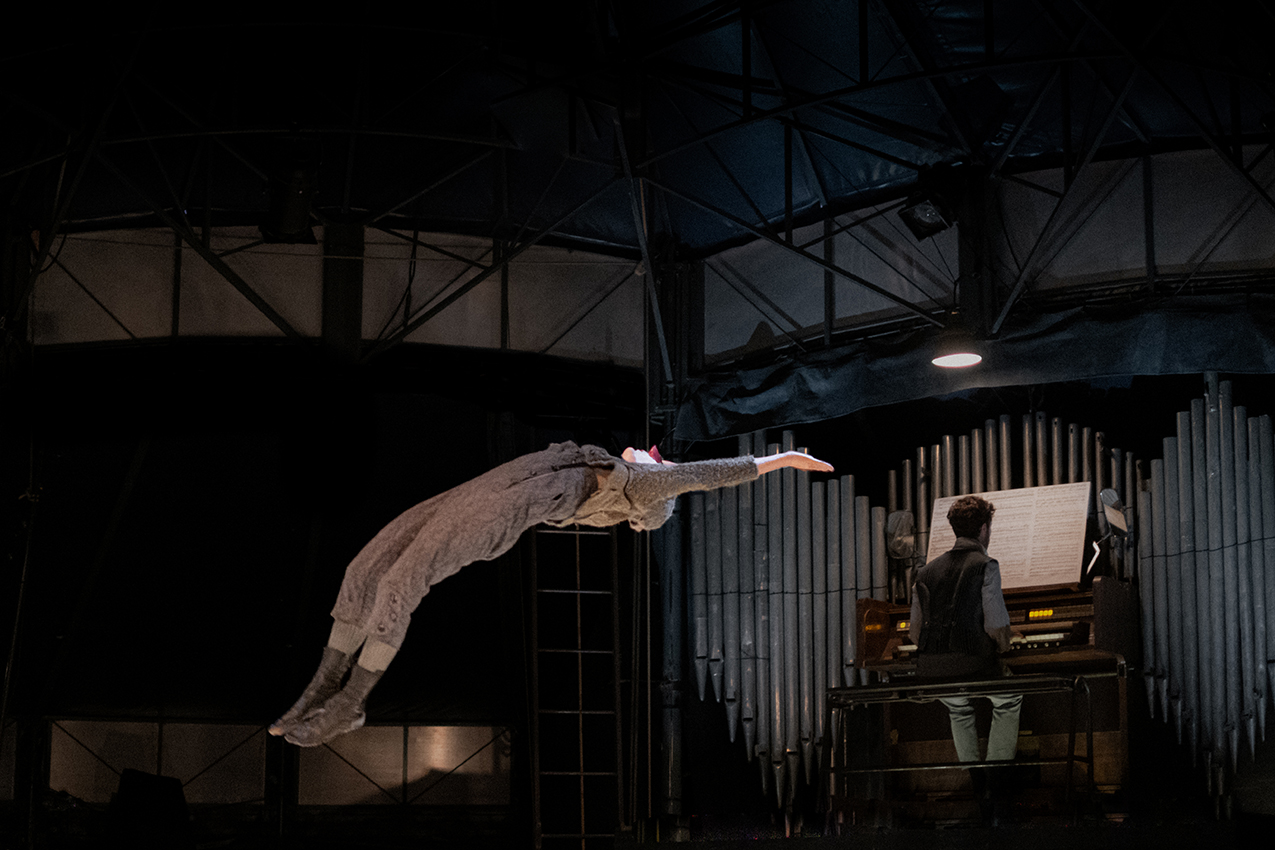 Tout y est : les clowns, les trapézistes, l’allégresse des cabrioles, l’éclat des lanternes, les frissons, les rires, la musique et même un véritable orgue. Ce joli monde enchaîne les numéros et les portés acrobatiques. Sur des airs de Bach ou de César Franck, tous remplissent l’espace à foison, jusqu’à le rendre bien trop petit. Et alors que dehors, le réel gronde, les circassiens goûtent joyeusement à cet instant suspendu, pétri des délices de l’enfance.